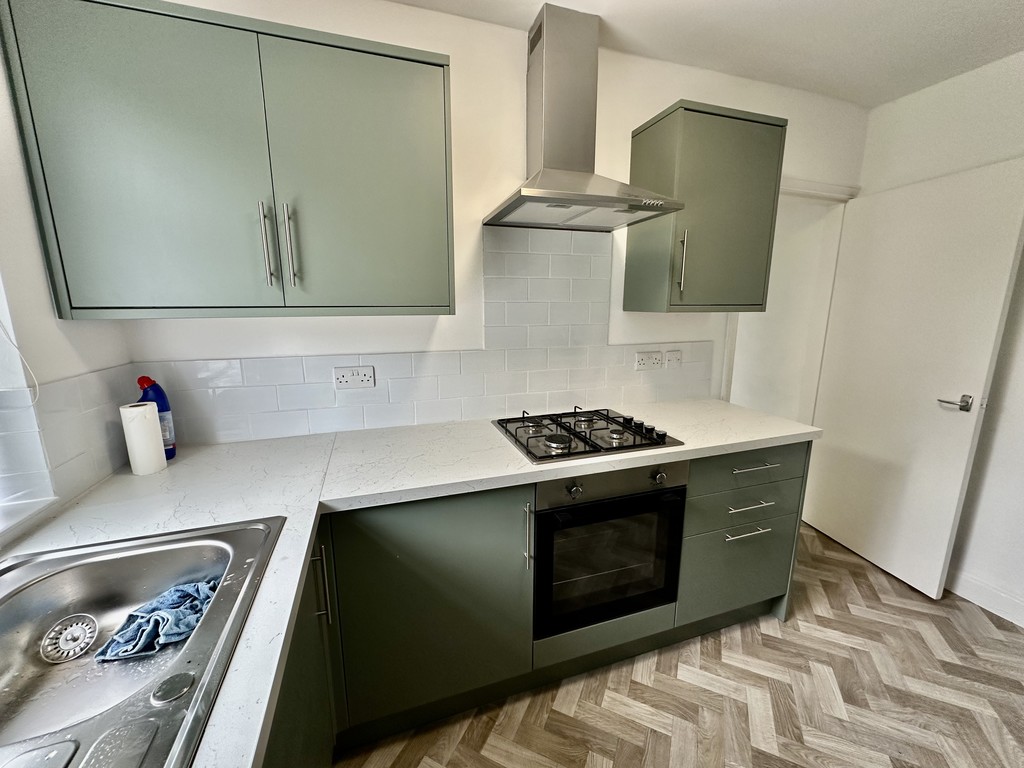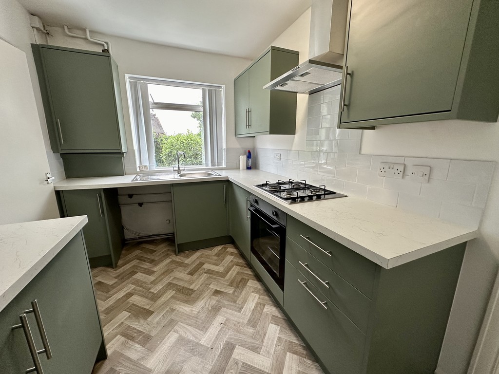 KITCHEN 7' 6" x 11' 3" (2.30m x 3.43m) Beautiful modern kitchen with a range of fitted cabinetry at both eye and base level, square edge work surfaces incorporating a single bowl sink with drainer unit, plumbing for a washing machine or dishwasher, partially tiled walls, four ring gas hob with extractor fan, single electric oven, boiler unit housed in a matching cupboard, door to the inner hall, door to the rear entrance hall, storage cupboard beneath the stairs with side facing double glazed window and further rear facing double glazed window.