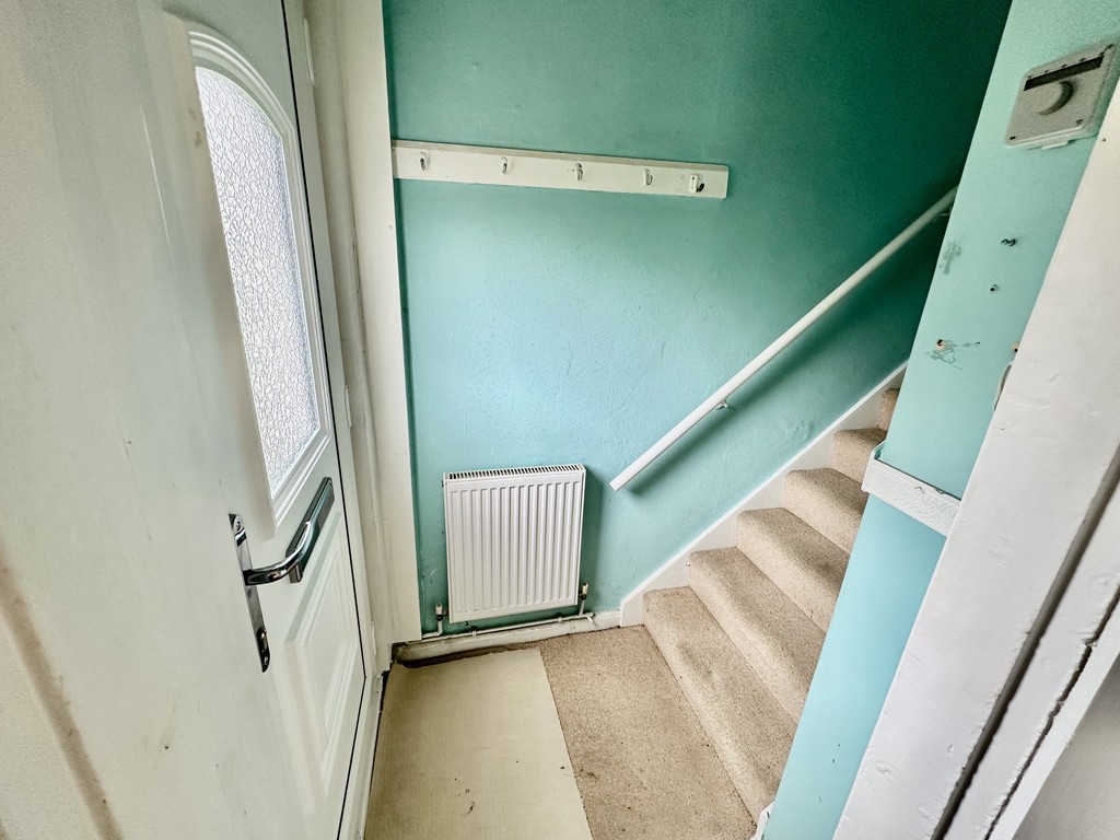 ENTRANCE HALL 3' 8" x 3' 6" (1.14m x 1.08m) The property is accessed via the front facing double glazed frosted door to the entrance hallway, radiator, door to the lounge and stairs to the first floor.