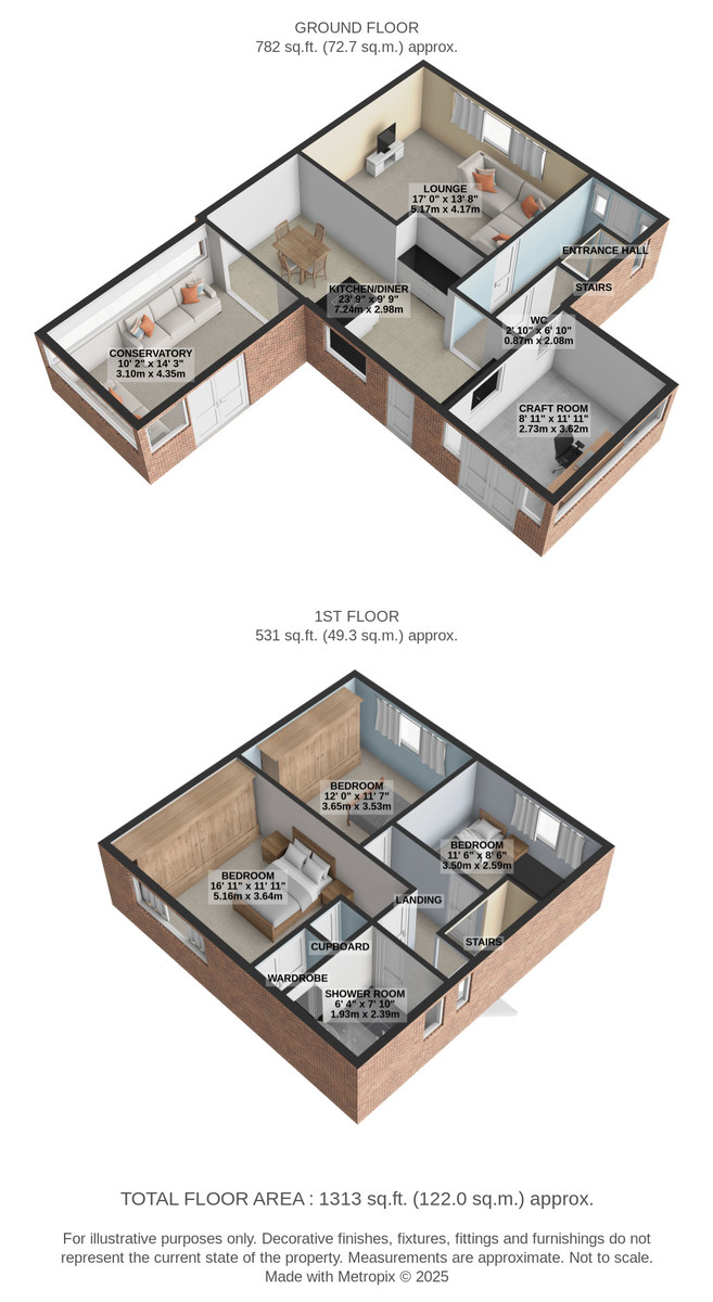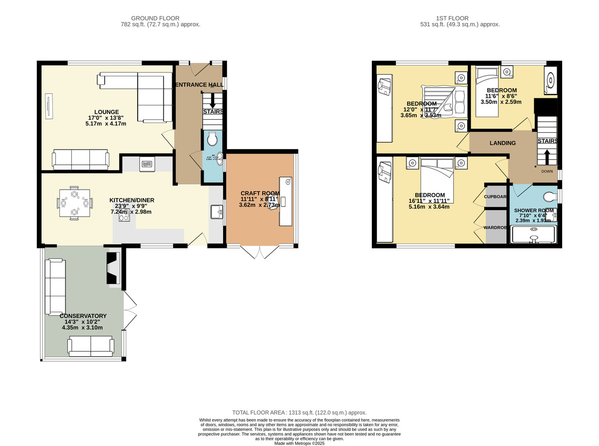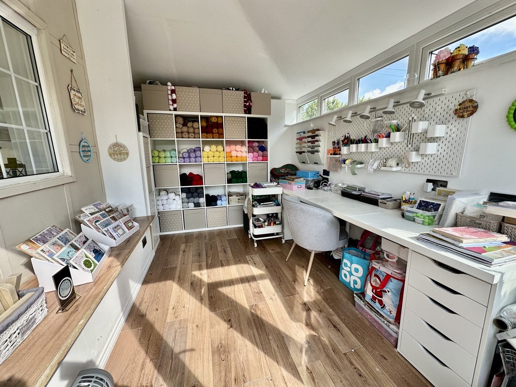 EXTERNAL CRAFT ROOM 8' 11" x 11' 10" (2.73m x 3.62m) Attached to the side of the house this room offers versatile use and is currently utilised as a craft room, it benefits from power points, lighting, rear/side facing double glazed windows and rear facing double glazed French doors.
