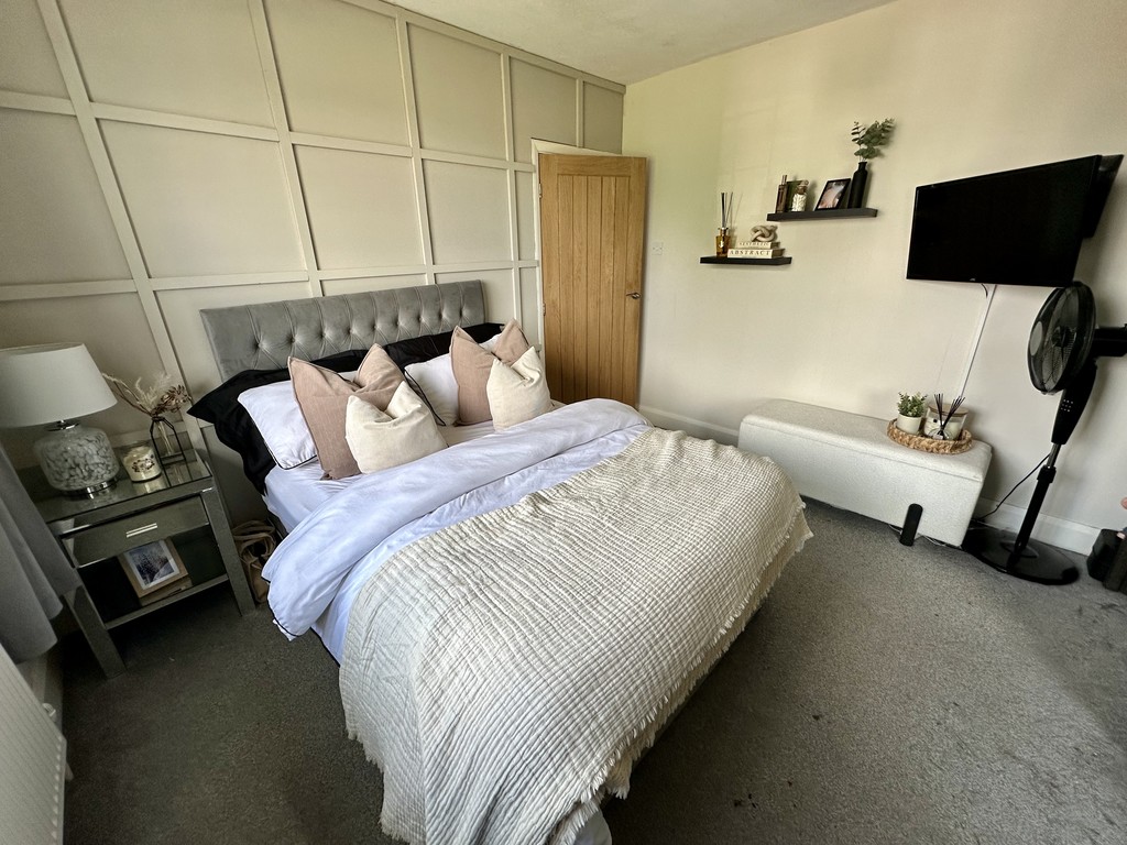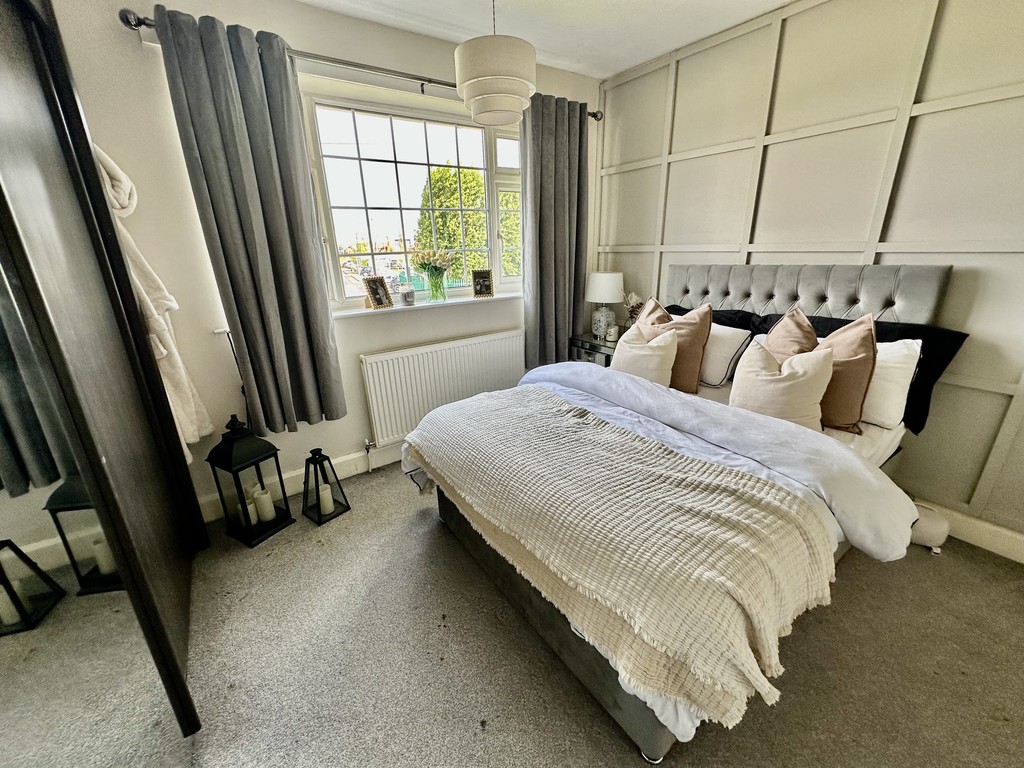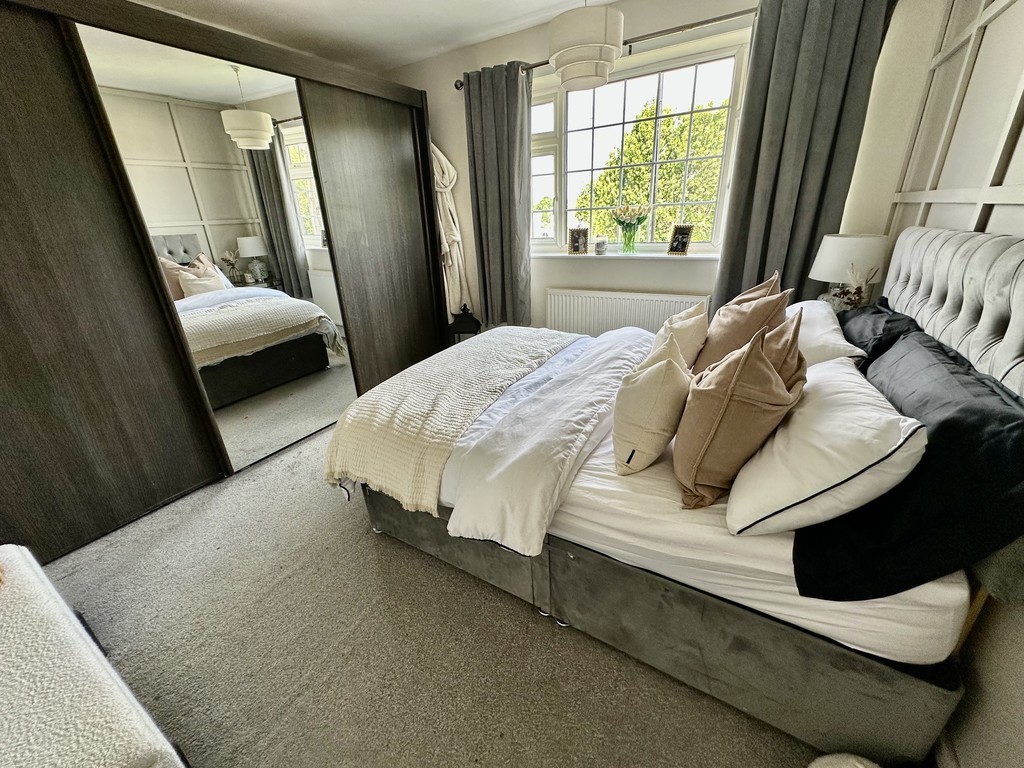 BEDROOM 11' 11" x 11' 6" (3.65m x 3.53m) Further spacious double bedroom with another set of wardrobes included in the sale, front facing double glazed window, radiator and feature wood panelled wall.