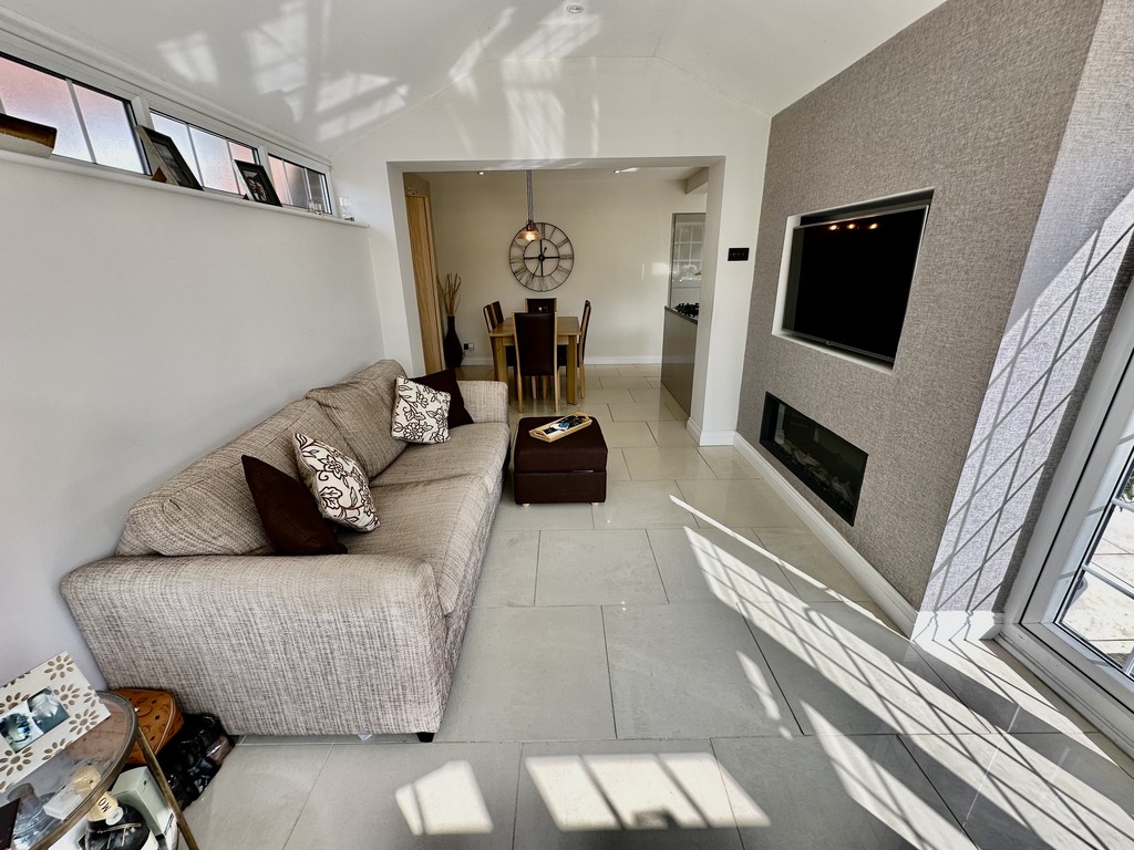 CONSERVATORY 10' 2" x 14' 3" (3.10m x 4.35m) Fabulous addition to the property with views over the rear garden via the side/rear facing double glazed windows, side facing double glazed French doors to the patio, tiled flooring, radiator, ceiling fan/light, media wall including television and electric feature fireplace.