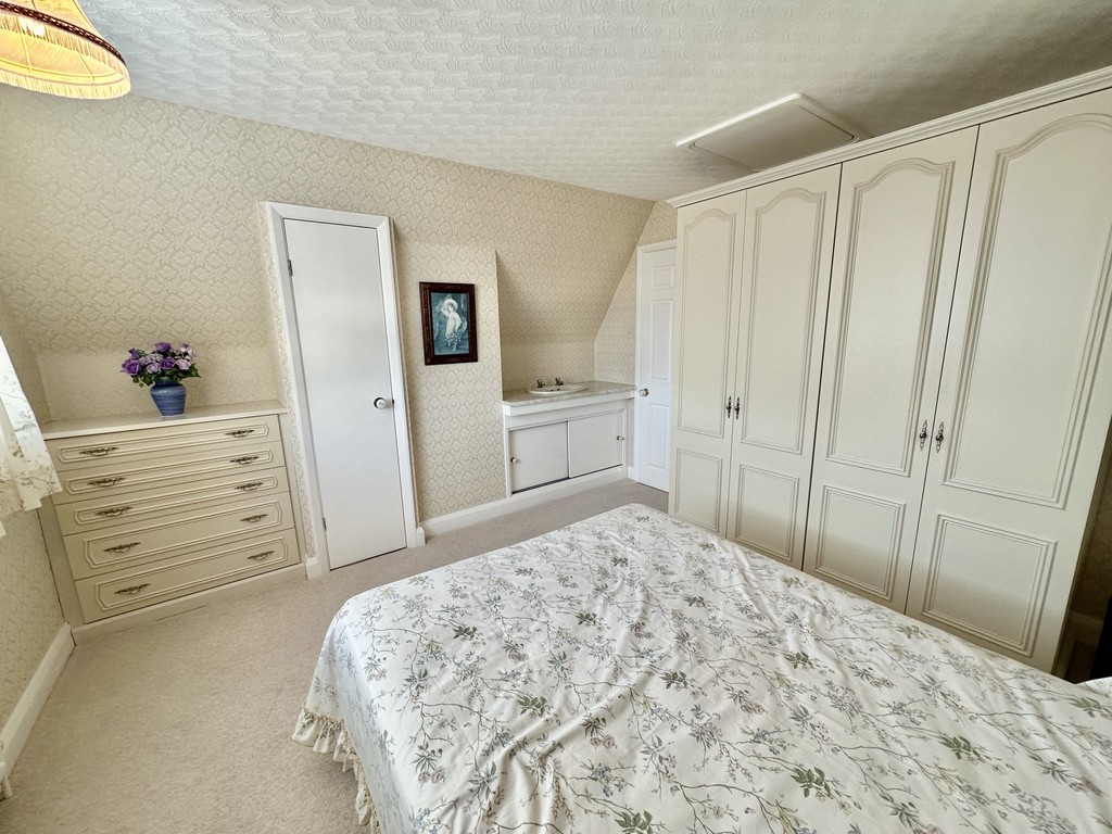 BEDROOM 11' 10" x 12' 9" (3.61m x 3.91m) Beautiful bedroom with side facing double glazed window, radiator, door to the storage/walk-in wardrobe, fitted storage with wash basin and a loft access point.