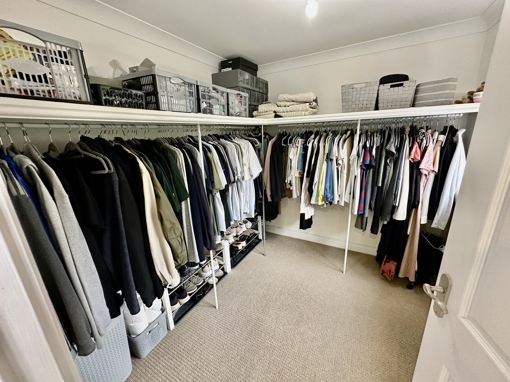 WALK IN WARDROBE 8' 3" x 7' 5" (2.54m x 2.28m) Great walk in wardrobe area with spotlights, rear facing double glazed frosted window, coving and a radiator.