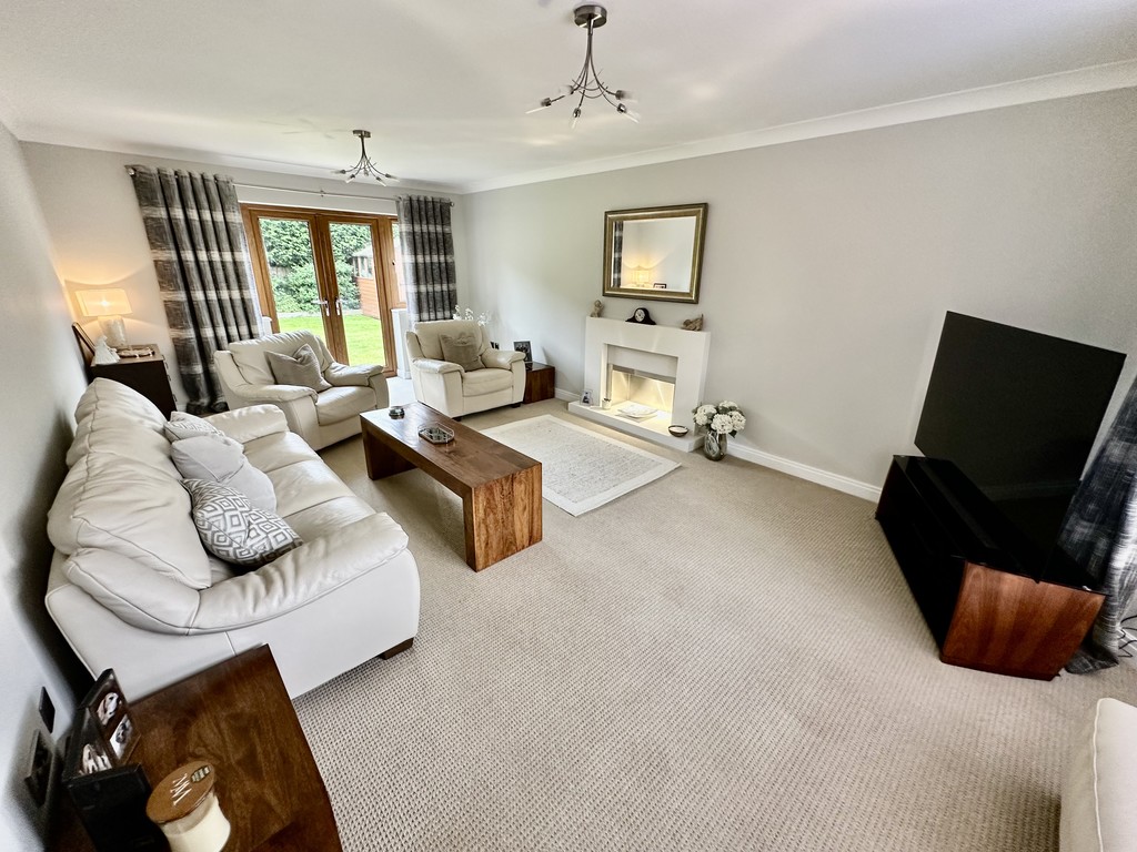 SITTING ROOM IN KITCHEN/DINER 14' 2" x 10' 7" (4.32m x 3.23m) Accessed from the kitchen/dining area with rear facing double glazed French doors to the garden, tiled flooring, underfloor heating, spotlights and coving.